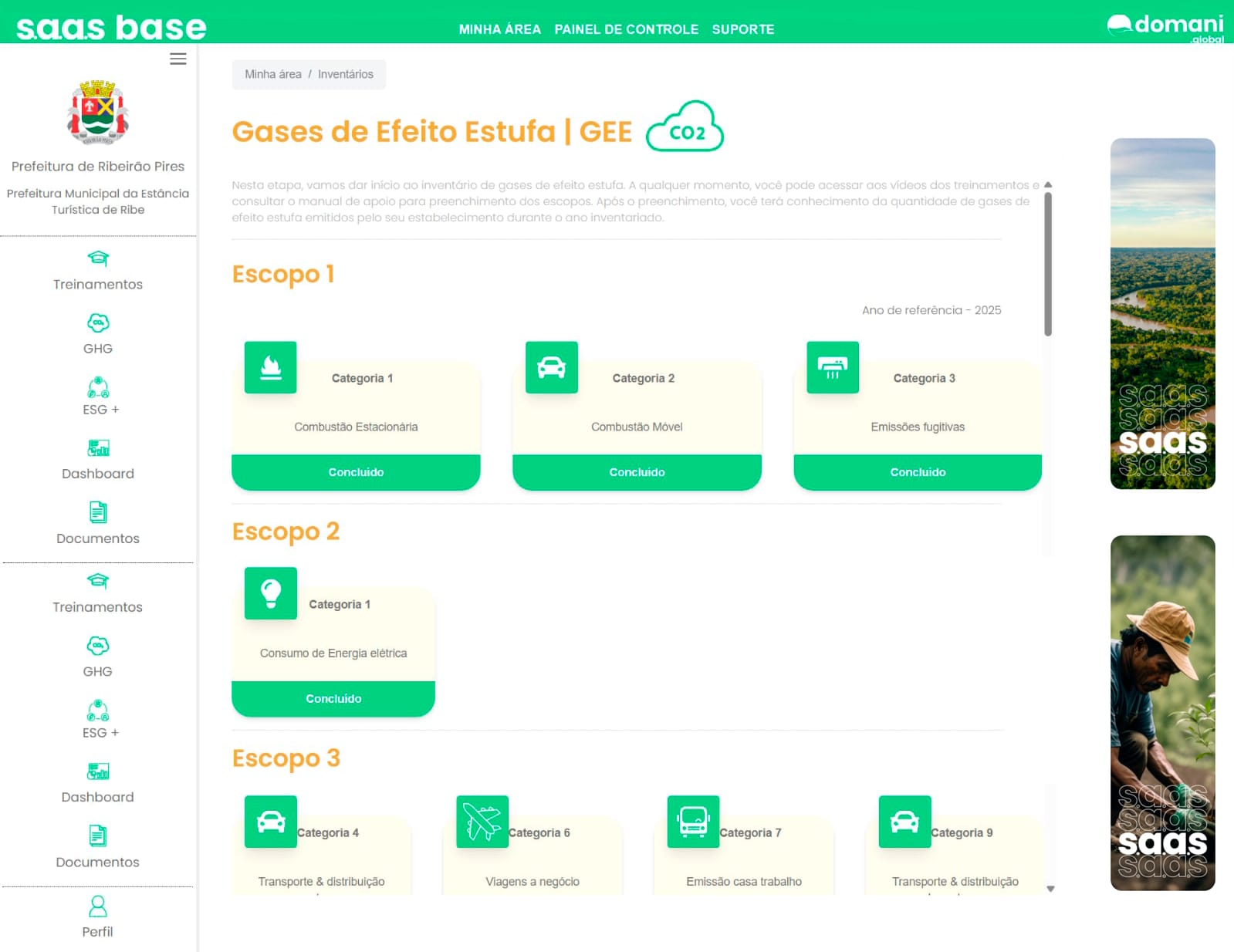 Plataforma software SaaS, que permite inventariar emissões de carbono, fortalece políticas públicas de sustentabilidade e enfrentamento às mudanças climáticas